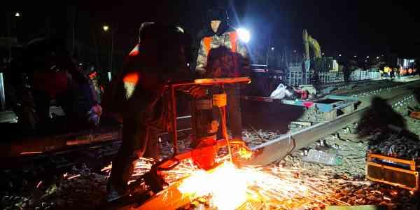 此次撥線工程軌道焊接作業(yè)南北端各1.3公里,12小時內焊接完成22個焊頭、凍結接頭制作16個、低溫應力放散800多米。